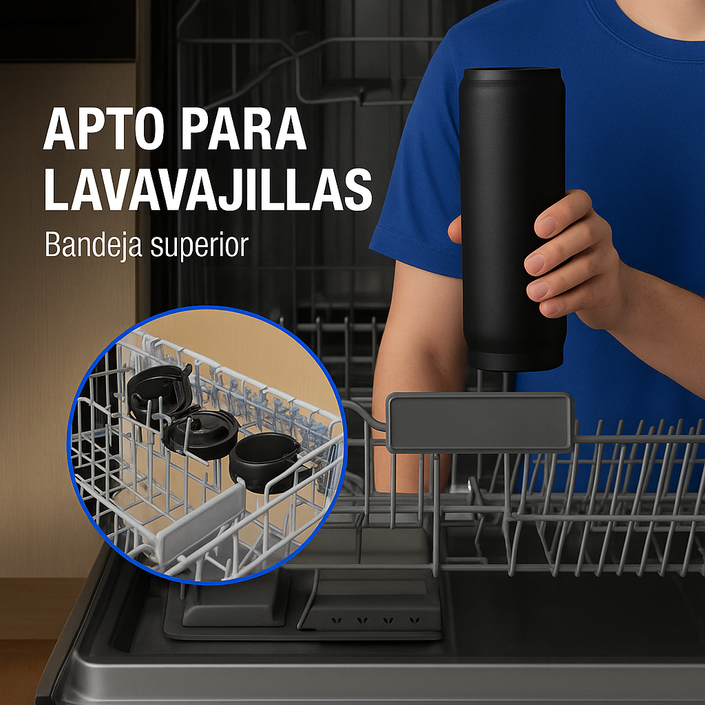 Fácil de limpiar: las tapas son ap aptas para lavavajillas (bandeja superior), lo que facilita mucho la limpieza. El cuerpo de la botella se recomienda lavar a mano para prolongar su vida y conservar mejor el acabado, aunque también puede colocarse en el lavavajillas si se prefiere.