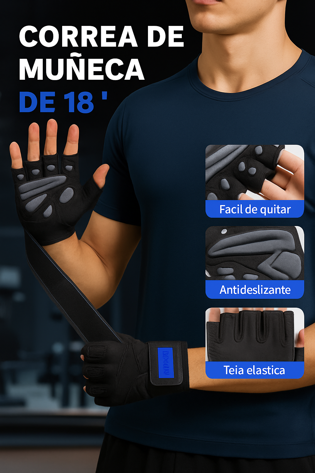 Guantes de Gimnasio con Soporte de Muñeca - Antideslizantes